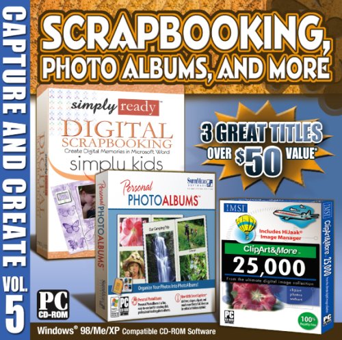 Includes software you can use in scrapbooking and creating photo albums, and 25,000 clip art designs.